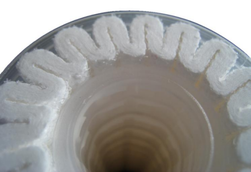 PP 微孔折疊濾芯是由超細聚丙烯纖維膜及無紡布或 (絲網)內外支撐層折疊而成,濾芯外殼、中心桿及端蓋均采用熱熔焊接技術加工而成,不含任何膠合劑、無泄漏、無二次污染
