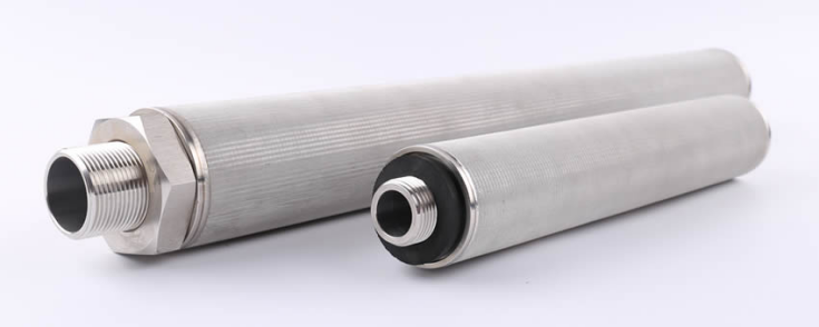 采用多層不銹鋼燒結網制成的圓柱形濾芯。多層金屬燒結網,是選用不同絲徑和目數的不銹鋼金屬網,按一定次序排列,經高溫燒結制作而成的一種實用性過濾材料,具有孔徑分布均勻、耐高溫、易于焊接、可再生、壽命長等優點。