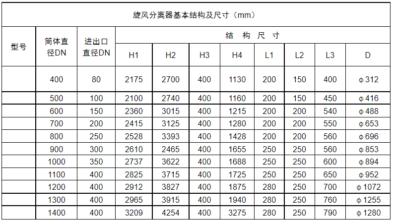 旋風分離器為水平安裝和立式安裝。水平安裝時設備的主軸線水平度小于5/1000,垂直安裝時設備的主軸線不垂直度小于3/1000。設備采用法蘭連接,并配置放空閥、安全閥、壓力表及排污閥等。