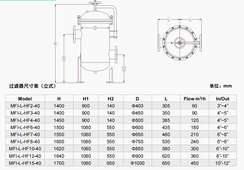 ●采用獨特的設計,使單個濾芯的流量正常在25~30m3/h,,因此僅需更少的濾芯即可滿足較大的流量要求。